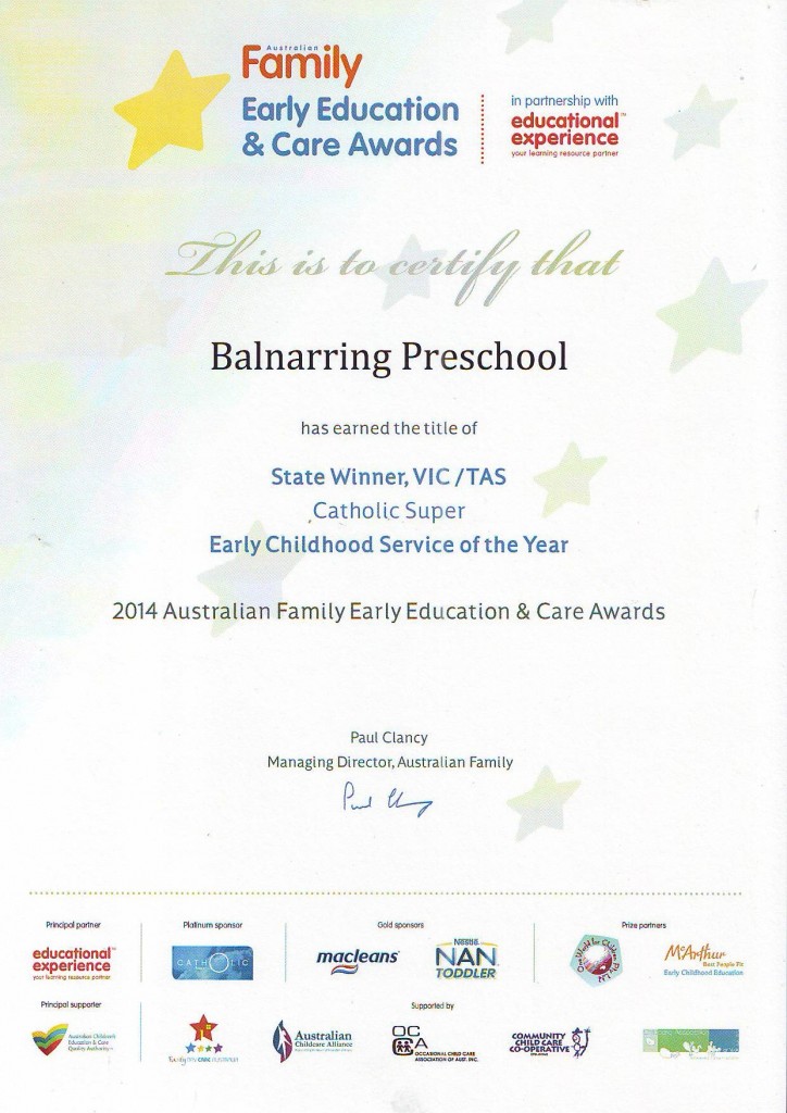 Victorian Early Years Award (via the Mornington Peninsula Shire webpage)